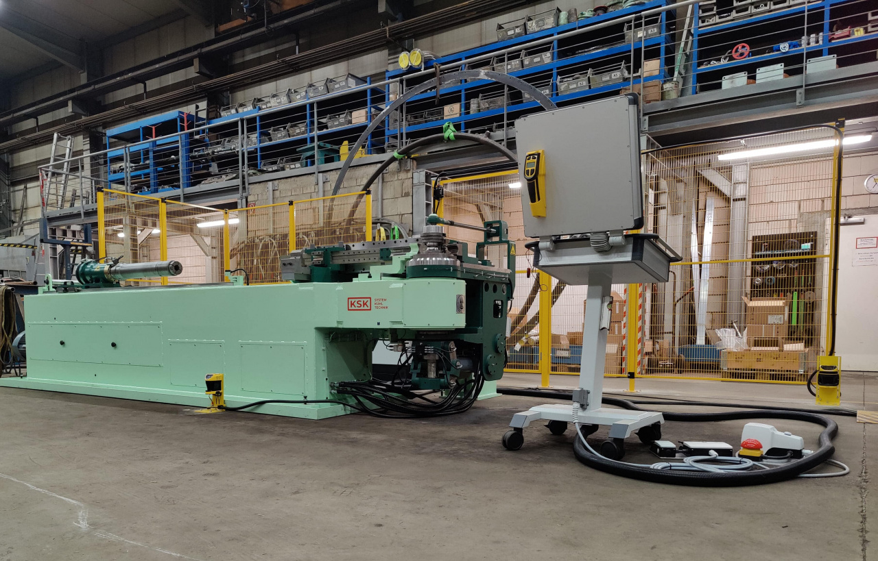 Wir sind im Kesselbau tätig und benötigen selbst tagtäglich qualitativ hochwertig gebogene Rohre. Aus diesem Grund haben wir im Jahr 2025 erneut in unseren Maschinenpark investiert und eine hydraulische Druckbiegemaschine der Fa. Schwarze-Robitec aus Köln angeschafft, Typ SR 60 DB.